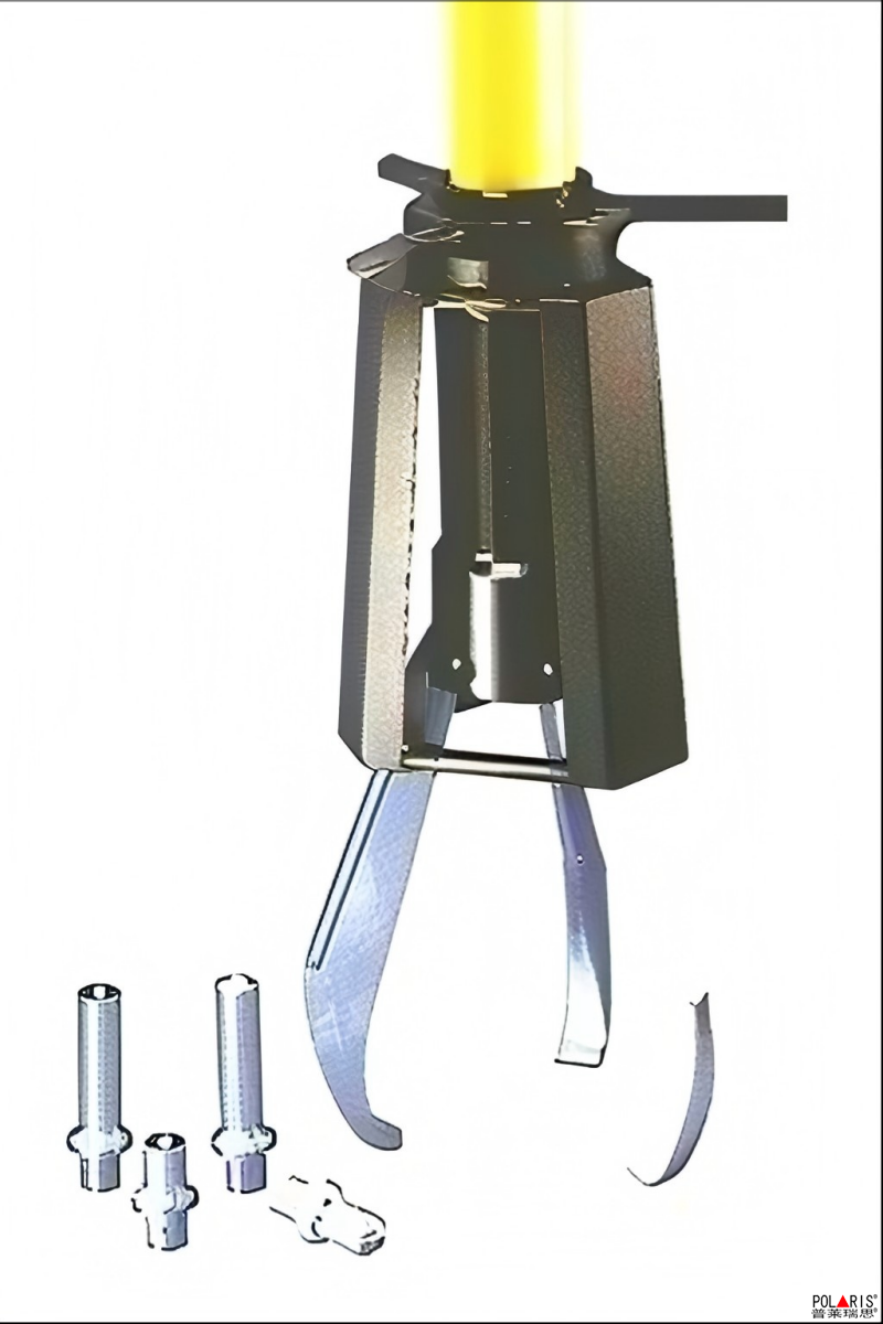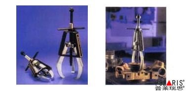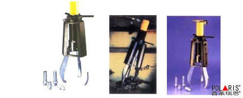 液压拉马是以液压起动杆直接前进移动,故推动杆本身不作转动。钩爪座又可随螺纹直接作前进后退之调距,操作时只要把手前后小幅度摆动,油压起动杆前移,钩爪相对应后退,把被